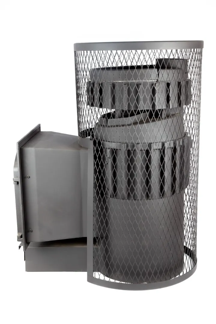 Банная печь ALMA c (сеткой-кольчугой) представляет собой твердотопливную модель с верхним подключением к дымоходу, топка из чугуна литьевого производства. Данный материал способен выдержать высокие и продолжительные термические нагрузки, устойчив к коррозии, а также отличается высокой теплопроводностью и теплоотдачей. Толщина стенок составляет 10 мм, что исключает линейное расширение, деформации и прогорание в процессе эксплуатации. Предназначена для отопления помещения парилки объемом от 20 до 30 куб.м.