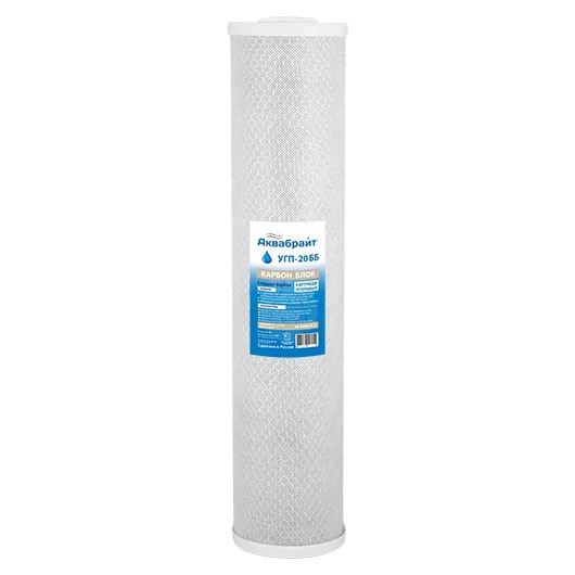Картридж АКВАБРАЙТ УГП-20 ББ изготовлен из спеченного прессованного активированного угля с пищевым допуском.