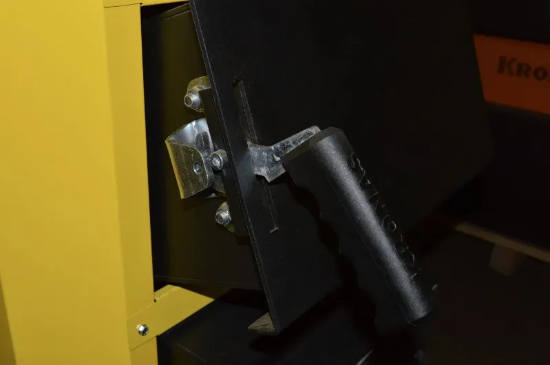 Горючее сырье загружается на водную колосниковую решетку. Процесс горения поддерживается воздухом, нагнетаемым вентилятором. Его работой управляет контроллер, постоянно замеряющий температуру теплоносителя. Котел на твердом топливе KRONAS UNIC-P 27 кВт самостоятельно поддерживает уровень температуры, заданный пользователем.