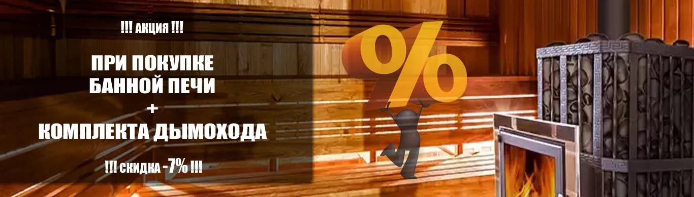 У нас отличное предложение, как здорово сэкономить этой осенью! Мы предлагаем купить банную печь + комплект дымохода - со скидкой 7%! Время акции ограничено!